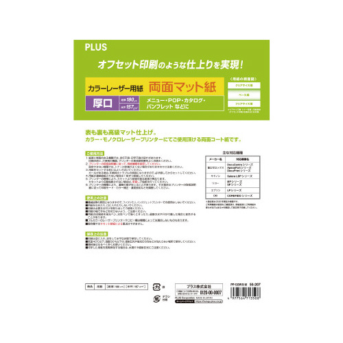 レーザープリンターの再現力を引き出す風合いのある紙質。両面マット紙。