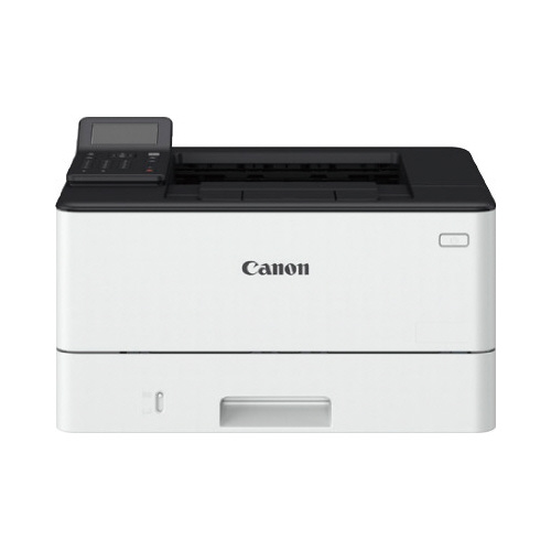 A4で40枚/分、A5横65枚/分の高速出力。リカバリータイム4秒と立ち上がりも速い。本体サイズ399×373×249mmのコンパクト設計。トナーカートリッジ070装着同梱