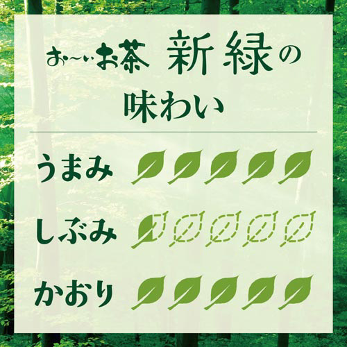 新緑の中で深呼吸しているようなすっきりとした緑茶飲料です。凍結茶葉抽出でつくった爽やかなやわらかい香りと甘い後味。フレッシュなおいしさをお届けするため、できる限り熱を加えずに製造しています。
