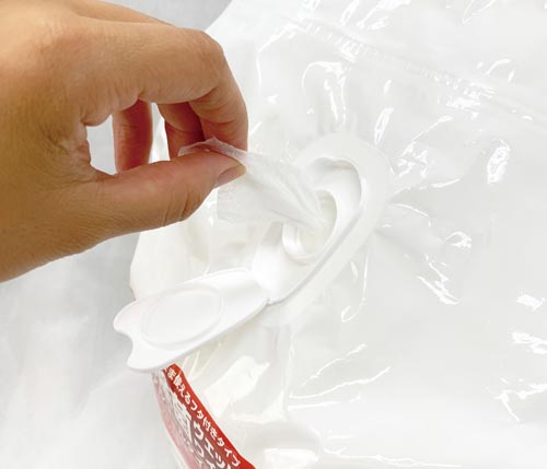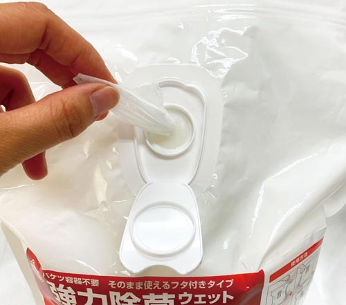 バケツ容器不要で、そのまま使えるフタ付きタイプの高アルコールタイプのウェットワイプ。たっぷり300枚の大容量。医療施設・介護施設の環境整備や、厨房・工場内の洗浄・除菌に。