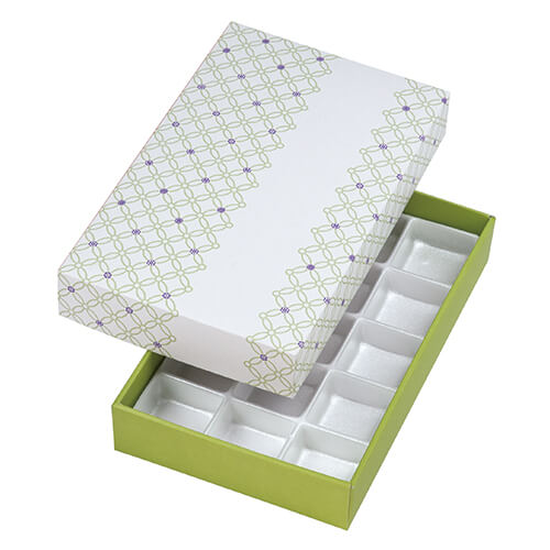 サイズが身285×174×45(フタ292×180×45・トレー50×50)mmのお菓子向けギフトパッケージ。和菓子15個にちょうど良い大きさとなっています。和菓子用のギフト箱にいかがでしょうか。