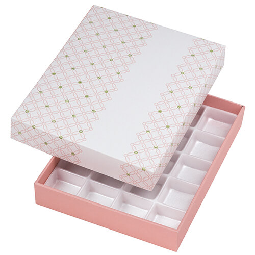 サイズが身285×228×45(フタ292×234×45・トレー50×50)mmのお菓子向けギフトパッケージ。和菓子20個にちょうど良い大きさとなっています。和菓子類のパッケージ、ギフト包装にいかがでしょうか。
