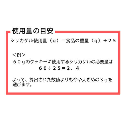 おかき、クッキー、飴などの食品や、電子部品、光学機器類、精密機器などの防湿、防錆対策、医薬品の乾燥保管などにも使用されます。