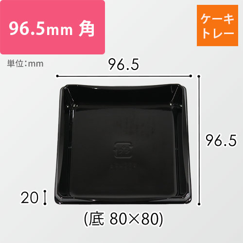 プチサイズのケーキにぴったりなケーキ用のトレー。96.5mm角のケーキに合わせた大きさです。高級感のある黒色で、ケーキをぐっとひき立てます。ケーキ屋さんや洋菓子店、飲食店でのご利用におすすめです。