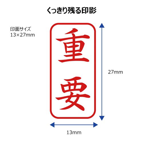 ※キャップレスタイプですのでキャップを取り外す手間がなく、片手で素早くなつ印できます。耐水性・耐光性に優れた顔料系インキを採用。使い終わりまでハッキリと濃い印影が続きます。本体の窓からインキ残量が見えるので交換時期が一目で分かります。ロック機能 使わない時はしっかりロックできるので安心して持ち運びできます。側面の二次元バーコードを読み取ると詳しい取扱い方法をWEBで確認できます。印面の位置合わせがしやすい捺印ガイド付きです。