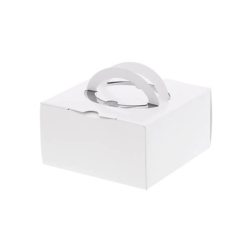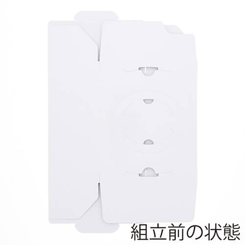 組立式の手提げケーキ箱です。気密性の高い差込形状で板紙特有の湾曲による隙間を緩和します。開閉もスムーズな構造です。環境に配慮した原紙を使用。サイズはH80×150角mmです。