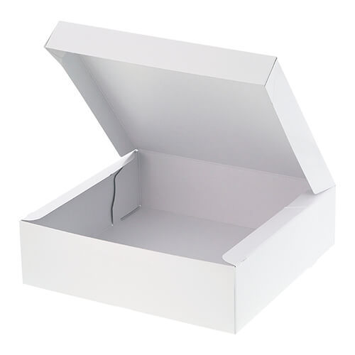 サイドオープンタイプのケーキ箱です。焼菓子の詰め合わせにもおすすめです。表面に艶出し加工あり。台紙・トレーは別売です。ポケットはついておりません。サイズはW221×D221×H65mmです。
