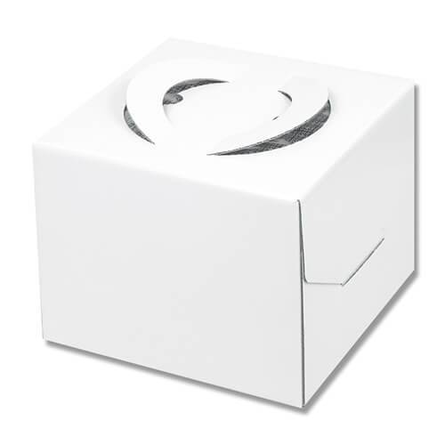 高さが150mmのデコレーションケーキ用手提げ箱です。金トレー付きです。本体の内側に保冷剤を入れるポケットが付いています。サイズは横190×縦190×高150mmです。