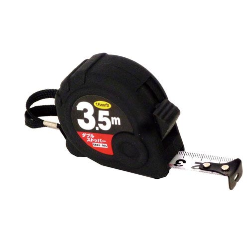 簡単な測定作業に。ストッパーが2ヶ所(側面・底部)ある為、姿勢や向きに応じて使い分けができます。テープ幅16mm長さ3.5mです。ベルトクリップ、ストラップ付です。