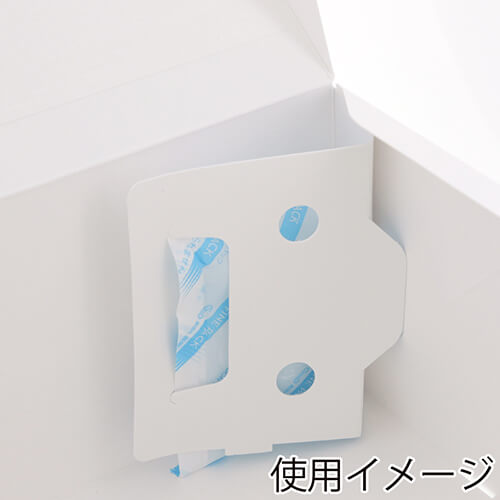 ワンフォーム型で、フタの内側には保冷剤を入れるポケット付きです。カットケーキ10個が目安です。サイズは横270×縦210×高105mmです。