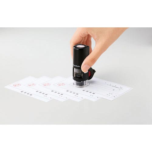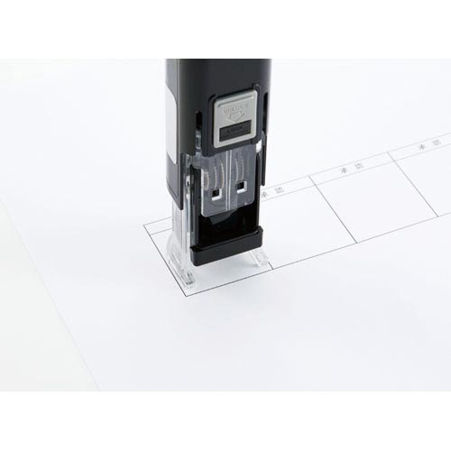 キレイな印影のまま連続なつ印 スタンプ台内蔵式。キャップを外す手間なく「名前」と「日付」をスタンプ!どこでも片手で素早く、連続なつ印。ポンポン捺(お)せて書類管理がはかどります。