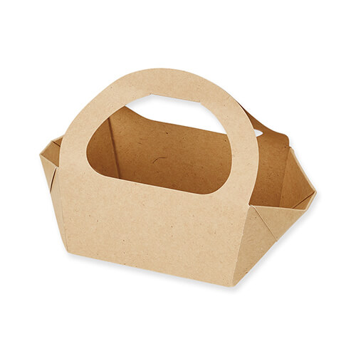 バスケット型のテイクアウトボックスです。商品を詰め合わせてそのままギフト箱に。商品セット時の個数目安は2~3個です。サイズはW130×D105×収納部H70×最上部H160mmです。
