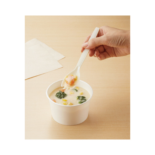 汁物もこぼれにくい両面ラミネート加工。スープだけでなくアイスやデザートにも使えます。