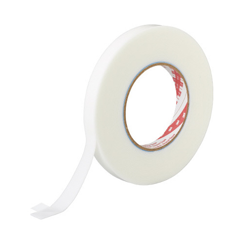 いろんな素材にこれ1本で使えます。金属・プラスチック・木材・軟質塩ビが固定できる両面テープです。大量に使える長巻タイプ。