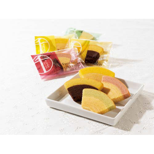 一層一層丁寧に焼き上げられた生地に、フルーツ果汁を混ぜ合わせ二層に仕上げました。