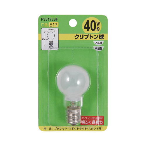 ミニクリプトン電球 長寿命 40W形 ホワイト