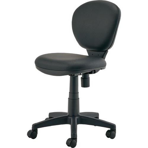 水拭きできる抗菌タイプのPVCレザー張り。背もたれロッキング機構付きのコンパクトチェア。