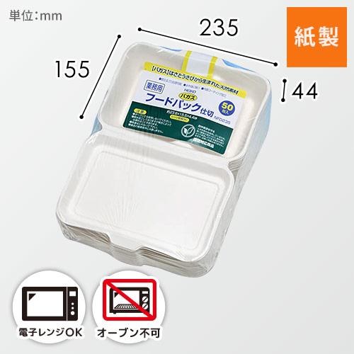フタ一体のフードパックタイプで、サイズは横23.5×縦15.5×高4.4cmです。
