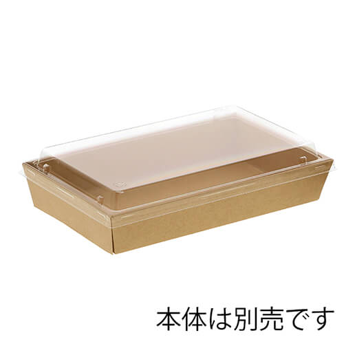 カジュアルテイストのメニューに最適な紙ボックス「未晒紙ボックスKM-77」の専用透明フタです。