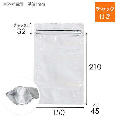 | サイズ | 袋巾150×長さ210+チャック上32×底マチ45mm(ガゼット巾) |
