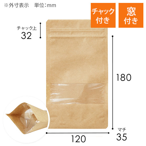| サイズ | 袋巾120×長さ180+チャック上32mm+底マチ35mm(ガゼット巾) |