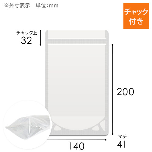 サイズ袋巾140×長さ200+チャック上32×底マチ41mm(ガゼット巾)