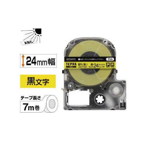 屋外に強いラベル 24mm幅 黒文字/黄ラベル