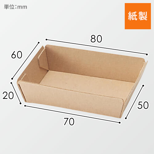 サイズは天面80×60・底面70×50・高20mmで、試食用の小さいトレーに適しています。