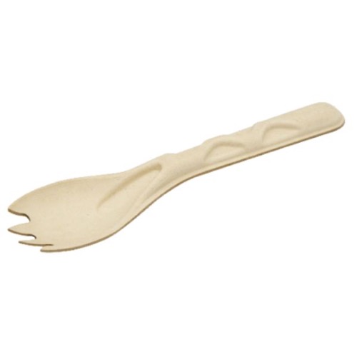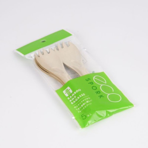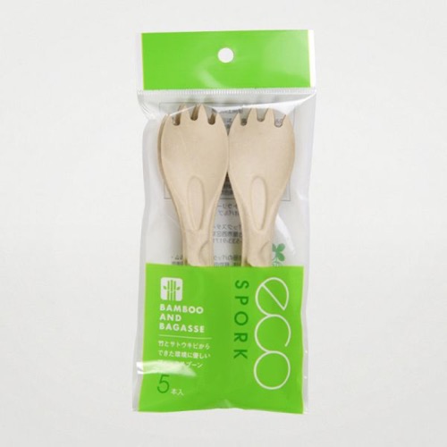 ECO COLLECTION 竹とバガス(サトウキビの搾りかす)の混合素材からできた植物由来の自然にやさしい使い捨て先割れスプーン(スポーク)