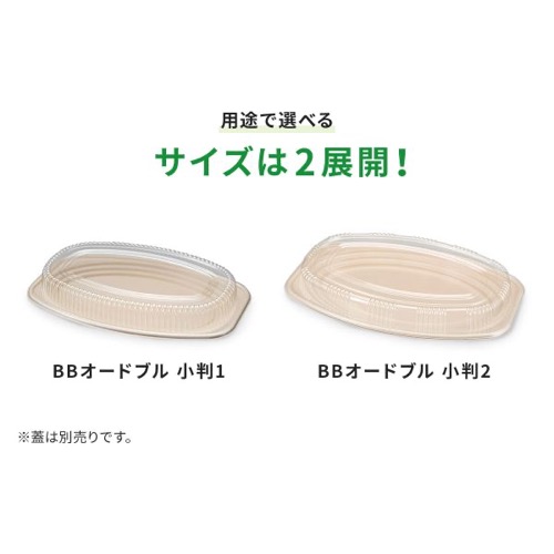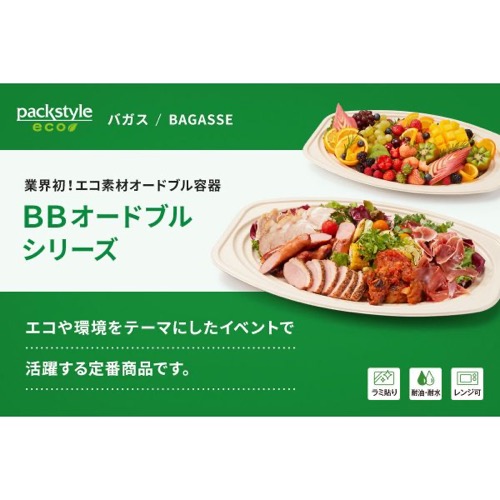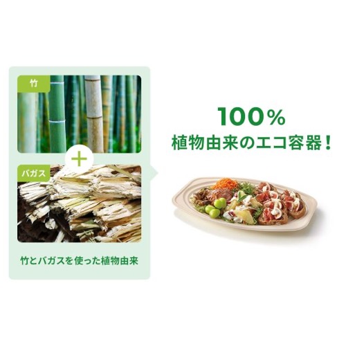 耐水耐油性、内面のPLAフィルム加工で食材の貼り付きを抑制、電子レンジ対応。