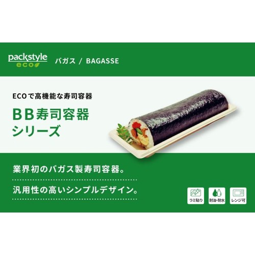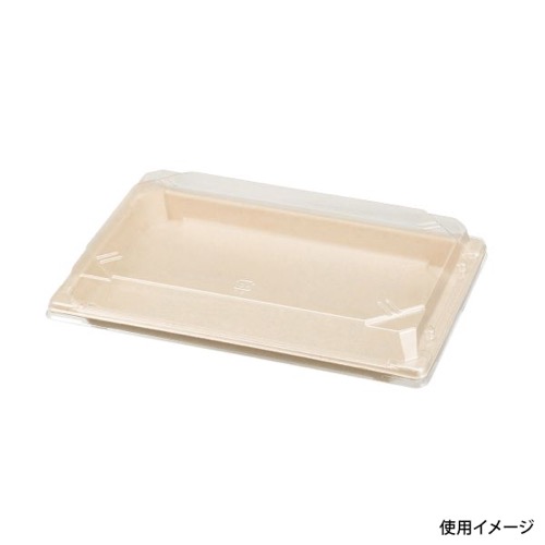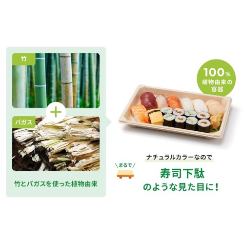 内面にPLAフィルムを貼ることでお米の付着を防ぎます。竹のナチュラルな風合いで、寿司下駄のような見た目を演出します。約8貫?18貫の寿司が乗るサイズを展開しています