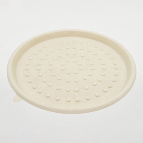 8等分の目安線があり、ピザの切り分けが簡単。表面のリブ(突起)により、電子レンジで効率よく温められます。使い捨てでテイクアウトに便利。※こちらの商品と対応蓋(別売)のバラ販売は入数が異なります。ご注意ください。※内面ラミネート加工されていない商品です