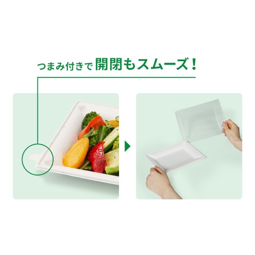 清潔感のある白を基調とした容器で、和洋中問わずさまざまなメニューに対応。耐油耐水性。電子レンジ対応のため、惣菜にぴったり。3種類のサイズ展開