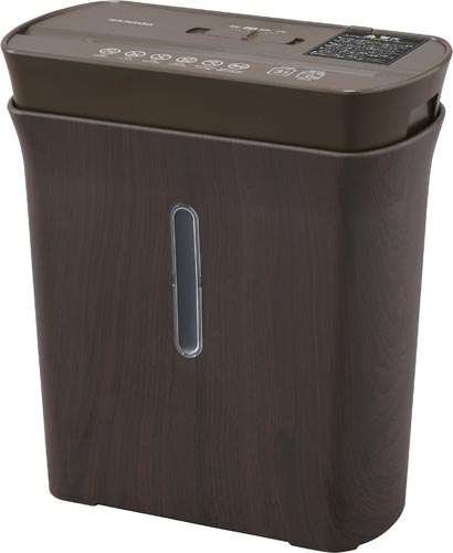 デザイン性の高い木目調細密パーソナルシュレッダー。お部屋に馴染むので、オフィスはもちろん、家庭用としてもおすすめです。