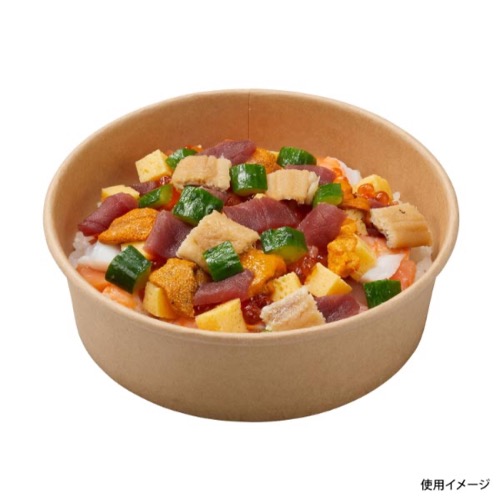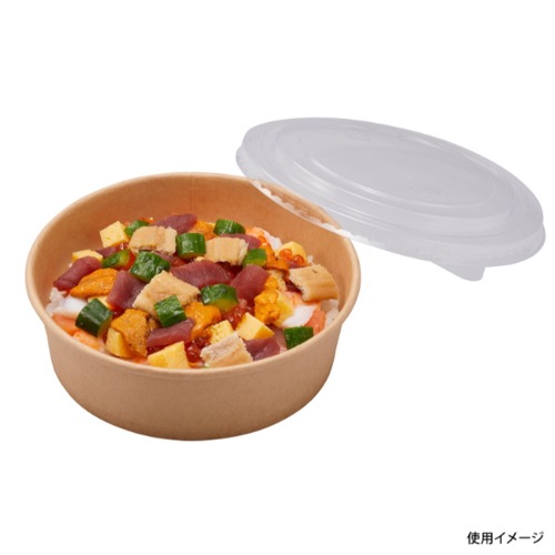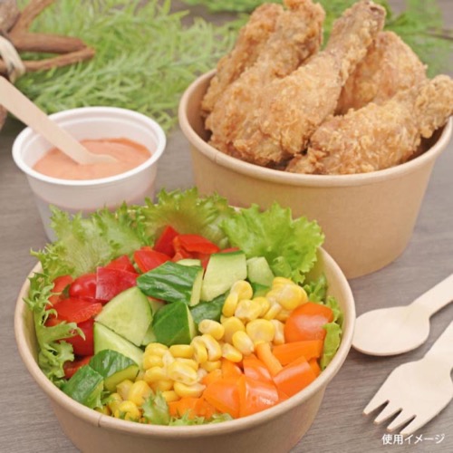 耐油、耐水対応。惣菜、弁当、スープと多岐にわたってご使用頂けます。レンジ対応不可。容量約500cc。※蓋は別売り。開閉時の汁漏れにご注意下さい。未晒しタイプ