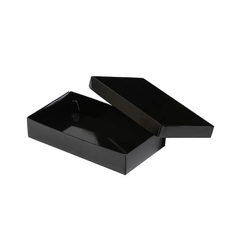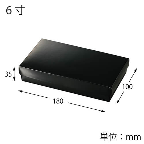 組立式の黒い寿司折箱です。表面にはフィルム加工をしており、内側も黒一色で高級感があります。細長い形状なので豪華な具材のサンドイッチやチョコレートなどの上質なスイーツにもぴったりです。