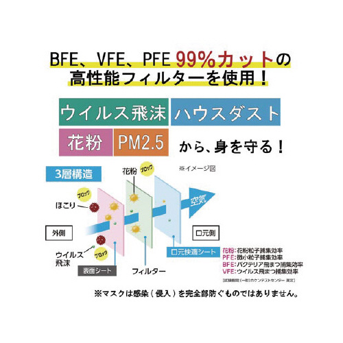 ●性能/PFE≧99%、BFE≧99%、VFE≧99%、花粉≧99%