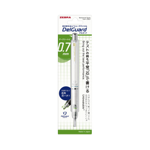 筆圧や書く角度に合わせて芯をガードする内部機構により、どれだけ強い力をかけても芯が折れないシャープペン。軸内部にシャープ芯を誘導する部品を取り付けたことで、短い芯も詰まることがありません。