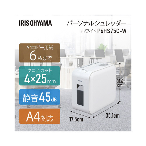 【クロスカット(4×25mm)】【同時細断可能数6枚】【ダストボックス容量7.5L(A4用紙約60枚分)】静音設計のパーソナルシュレッダー。椅子に座ったまま細断可能。機密情報のセキュリティにおすすめ。