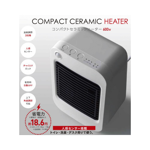 デスク下、トイレ、脱衣所などパーソナルスペースで活躍。人感センサーで動きを感知して自動でON/OFF。3段階温風調整。上下の角度調節でピンポイントに暖められる。
