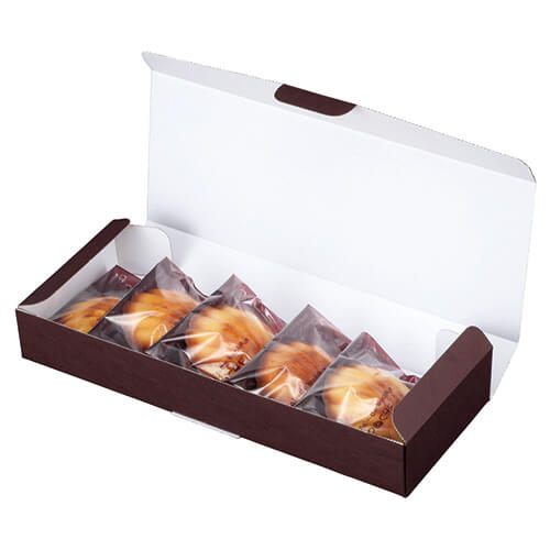 サイズが275×110×40mmのお菓子向けギフトパッケージ。スフレ、フロマージュ10個にちょうど良い大きさとなっています。半生菓子のパッケージ、ギフト包装にいかがでしょうか。