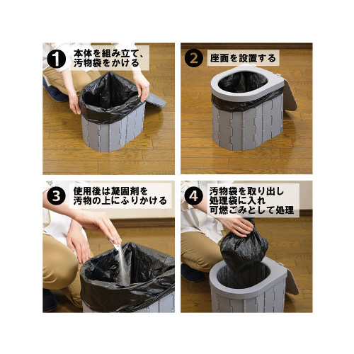 ●セット内容/便器×1、収納バッグ×1、汚物袋×12、処理袋×2、凝固剤×12