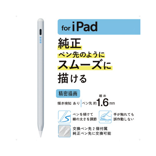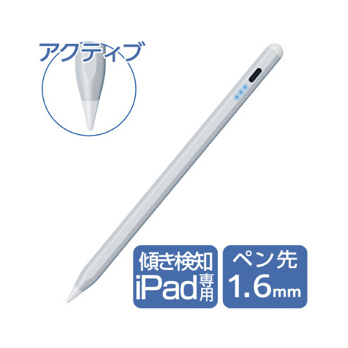 隙間時間の充電ですぐに使える!約20分でフル充電可能な急速充電機能を搭載した、iPad用アクティブタッチペンです。