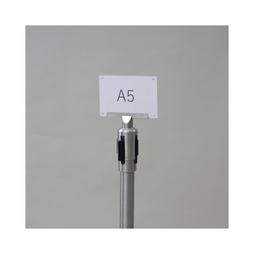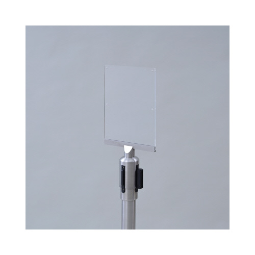 ベルトパーティションの上部に取り付け可能なA5サイズの案内板。ポールの上から被せるだけなので、好みの方向へ向きを変更可能。
