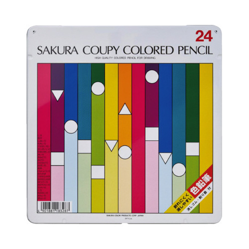 クーピー色鉛筆は従来品と異なり、消しゴムで消しやすい色鉛筆です。ポリマー芯なので均一な品質です。軸の中で芯が折れているといったことがほとんどありません。消しゴムと削り器が付いています。
