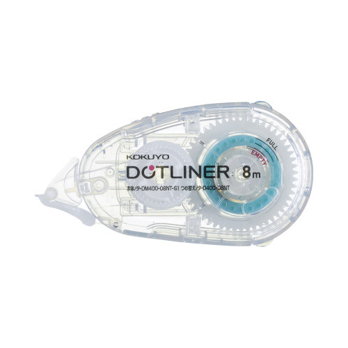 <ドットライナー(透明タイプ)のお試し用>透明ボディ&残量メモリでテープ交換のタイミングが分かりやすく便利です。お試し用はテープ長さが8mで手軽にお試しでき最後まできっちり使えます。