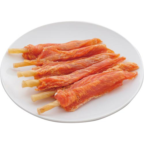 ガムを厚みのあるささみで巻いたジャーキーです。肉量たっぷり約4倍です。無着色&低脂肪。農林水産省より指定加熱処理施設として認定された工場で製造した、品質にこだわったジャーキーです。