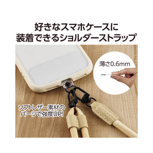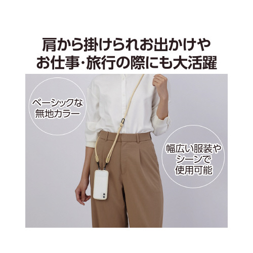 ●肩から掛けられ、バッグやポケットから取り出さなくてもすぐにスマートフォンの操作ができるショルダーストラップです。