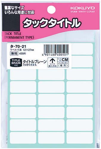 書類やファイルの分類に使用できる粘着剤付きのタイトル表示シール。鉛筆、ボールペン、サインペンなどできれいに記入できます。台紙から外して、すぐ貼れます。タイトルブレーン対応。