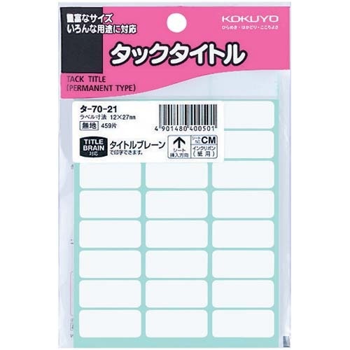 書類やファイルの分類に使用できる粘着剤付きのタイトル表示シール。鉛筆、ボールペン、サインペンなどできれいに記入できます。台紙から外して、すぐ貼れます。タイトルブレーン対応。